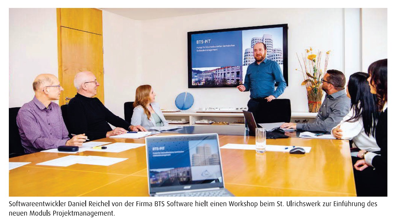 Das St. Ulrichswerk hat das BTS Grundmodul M1+M2 Instandhaltungs- und Vertragsmanagement 2023 eingeführt und seither kontinuierlich erweitert. Zuletzt eingeführt wurde das Modul M4 Projektmanagement. Das Unternehmen zieht folgendes Fazit: „BTS-PiT (…), ist die wichtigste Plattform für die internen Arbeitsabläufe des St. Ulrichwerks.“ Auch die Zusammenarbeit mit externen Dienstleistern und Handwerkern erfolge zielführend, die Workflows seien digitalisiert und optimiert. Lesen Sie mehr im beiliegenden Anwenderbericht.